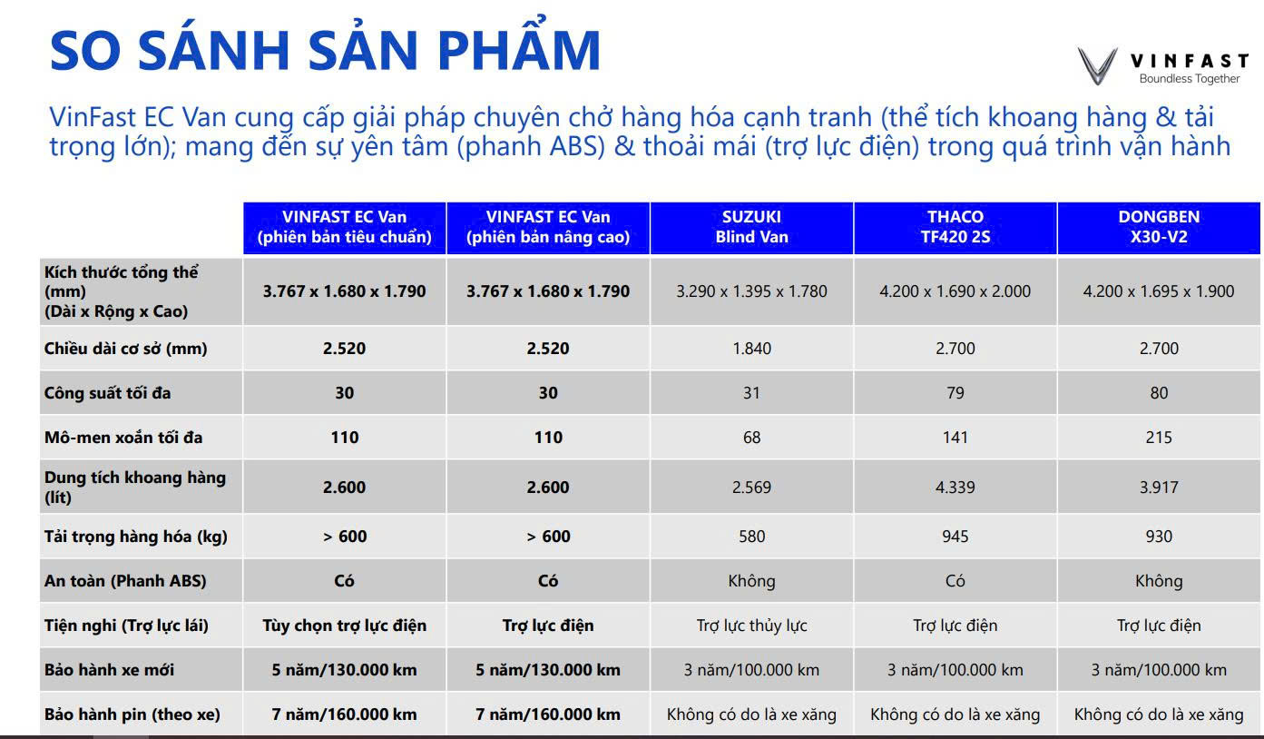 So sánh Vinfast Van EC với những dòng xe cùng phân khúc